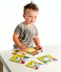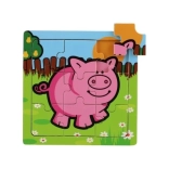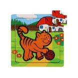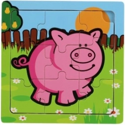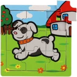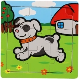 Il puzzle e realizzato in legno di qualite, che offre durata e una sensazione piacevole durante la manipolazione. Nove pezzi sono posizionati su una tavola di legno con bordo fresato che facilita la composizione e aiuta a mantenere i pezzi in posizione.