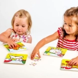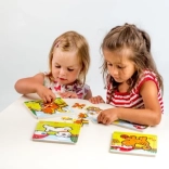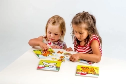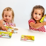 I pezzi sono posizionati su una tavola di legno con bordo fresato per una pif9 facile manipolazione dalle piccole mani.