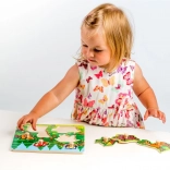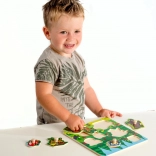 I motivi del bosco, come gufo, scoiattolo, cinghiale e cervo, motivano alla scoperta in modo divertente. La base in legno con cornici mantiene ogni pezzo al suo posto e facilita l’abbinamento corretto per forma e immagine.