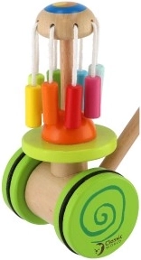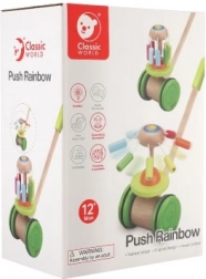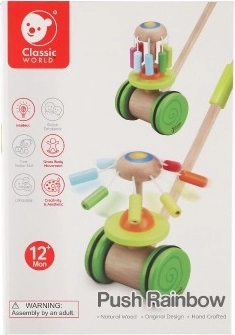 Il carrello a spinta in legno colorato Classic World rappresenta il giocattolo ideale per i piccoli esploratori che stanno imparando a camminare. Questo carrello è dotato di una giostra colorata che ruota ed emette suoni piacevoli, attirando l'attenzione dei bambini e supportando la loro camminata.