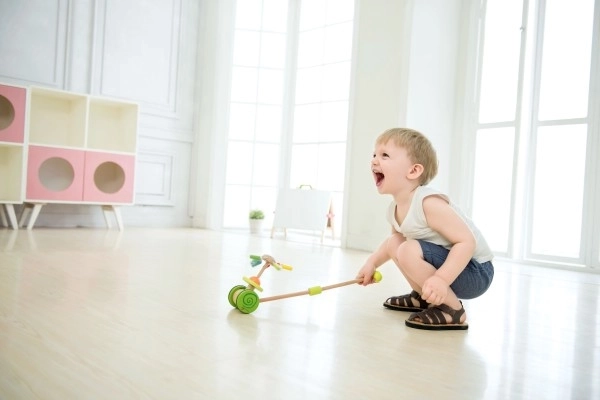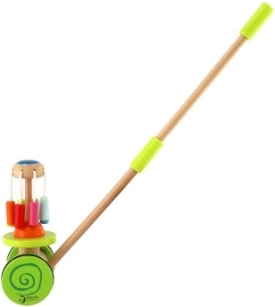 Questo carrello a spinta aiuta i bambini a migliorare la tecnica del camminare e supporta il loro equilibrio.