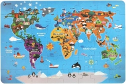 I bambini possono esplorare ogni angolo del mondo grazie a questo straordinario puzzle in legno illustrato. Incollando i singoli pezzi al loro posto, imparano a riconoscere i vari continenti e oceani.