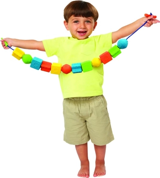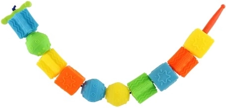 Il Gioco di infilatura forme in gomma è perfetto per i bambini a partire da 18 mesi. I bambini possono infilare pezzi di varie forme su un cordino, rendendo l'attività divertente e utile per sviluppare le loro abilità motorie.