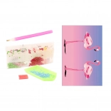 Tela autoadesiva stampata, pietrine (mix di colori), applicatore (penna), cuscinetto di cera, vassoio di smistamento