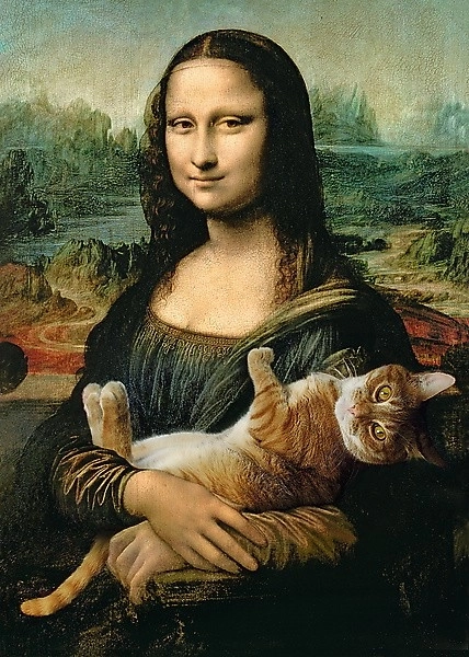 Il motivo della Mona Lisa con il gatto Mruczek aggiunge un elemento divertente e giocoso alla scena artistica classica.