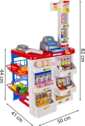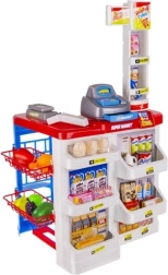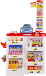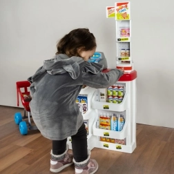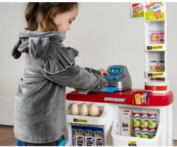 Il supermercato per bambini è ideale per piccoli negozianti e clienti. Include una cassa funzionante con cassetto estraibile, scanner di codici a barre con suono, bilancia da negozio, scaffali con prodotti e un carrello della spesa. Grazie alla ricca dotazione i bambini allenano calcolo, comunicazione e autonomia.