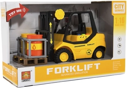 Carrello elevatore in plastica 23 cm a inerzia a batteria con suono e luce in scatola 29x19x12 cm