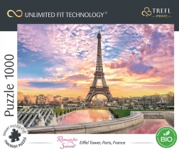Scopri un divertimento senza confini con i puzzle TREFL PRIME con tecnologia Unlimited Fit Technology (UFT). Il puzzle da mille pezzi con il tema della Torre Eiffel al tramonto offre un taglio preciso, forme dei pezzi uniche e la possibilità di collegare più soggetti in grandi collage. Realizzato in cartone blu di altissima qualità, con pezzi che si incastrano saldamente e confezione ecologica senza pellicola plastica.
