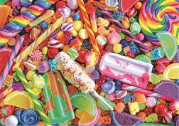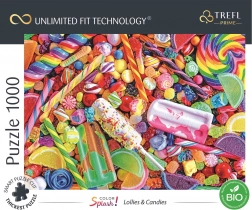 Immergiti nel mondo dei colori con il motivo di lecca-lecca e caramelle e componi un'immagine di circa 68,3 × 48 cm. La serie TREFL Unlimited Fit Technology consente di creare collage puzzle personalizzati: i confini li decidi tu. La speciale tecnologia di fustellatura garantisce che i diversi motivi della serie UFT si incastrino perfettamente tra loro.