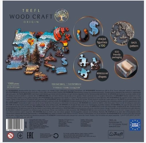Concediti un momento di relax con il puzzle in legno TREFL Wood Craft Origin, caratterizzato da una scena ricca di colori con mongolfiere sopra acque tranquille. Grazie alla precisione laser, i singoli pezzi sono robusti, lisci e mantengono la forma, assicurando un’esperienza di composizione piacevole e fluida.