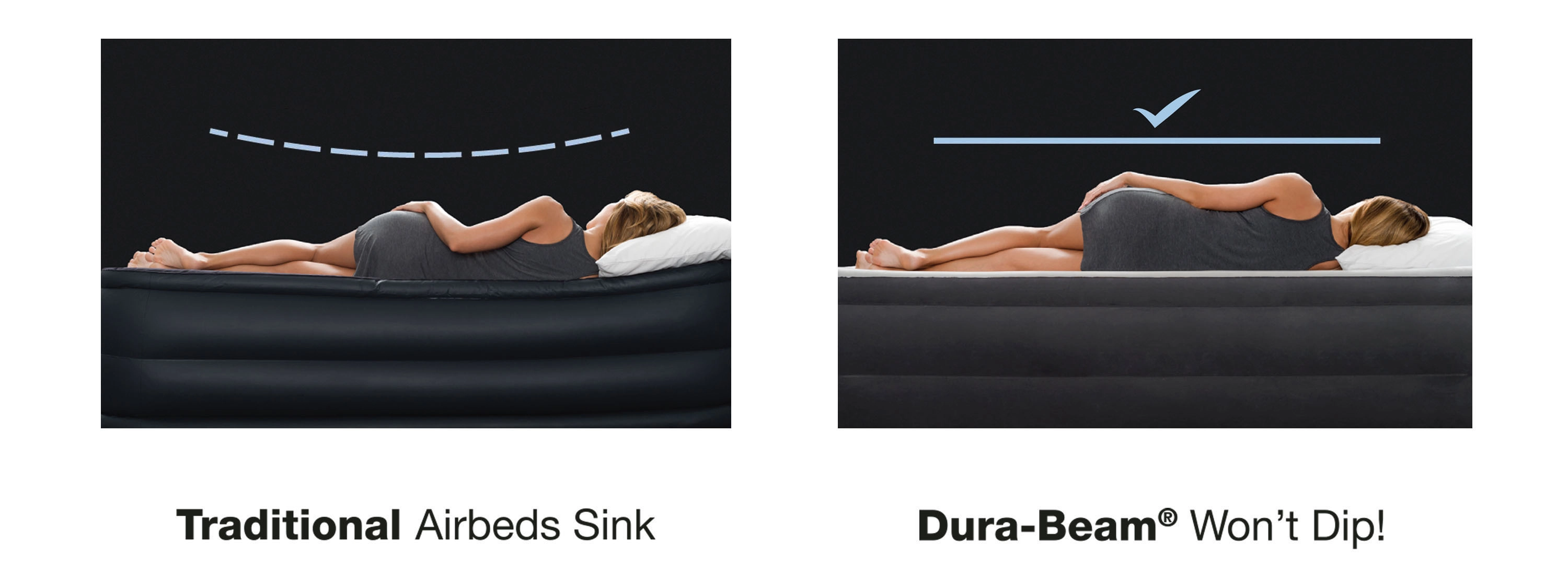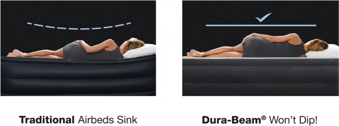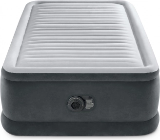 Il letto gonfiabile Intex Deluxe è un’ottima scelta per gli ospiti, per case vacanza e per le ferie. L’altezza rialzata di 46 cm facilita l’alzata, mentre la superficie floccata e morbida assicura una piacevole sensazione al tatto e mantiene il lenzuolo ben fermo. I rinforzi interni Fiber-Tech in resistenti fibre di poliestere mantengono il materasso solido e stabile nella forma, mentre il sistema Dura-Beam distribuisce il peso in modo uniforme e favorisce il corretto allineamento della colonna vertebrale.