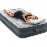 Comodo letto gonfiabile Twin con tecnologia Dura-Beam che offre supporto stabile e una superficie piacevole per un sonno di qualità a casa e in viaggio. Grazie alla pompa elettrica integrata 220–240 V lo gonfi più in fretta di 2 minuti. Dimensioni 99 × 191 × 33 cm, portata max 136 kg, vinile di qualità e superficie floccata morbida per un comfort superiore. Facile gonfiaggio, sgonfiaggio e stoccaggio.