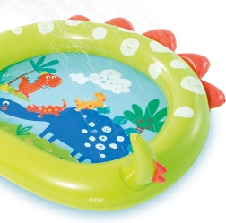 Allegra piscina gonfiabile con fontana e tema dinosauro ideale per il divertimento estivo in giardino. La piscina è realizzata in materiale PVC di alta qualità con dimensioni di 119 x 109 x 66 cm.