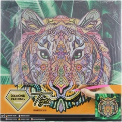 Scopri relax e creatività con il set completo per la pittura diamantata con motivo tigre. La tela è già tesa su un telaio in legno da 30 × 30 cm e nella confezione trovi tutto il necessario: penna applicatrice, vaschetta, cera e set di diamantini per un lavoro facile e preciso.