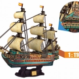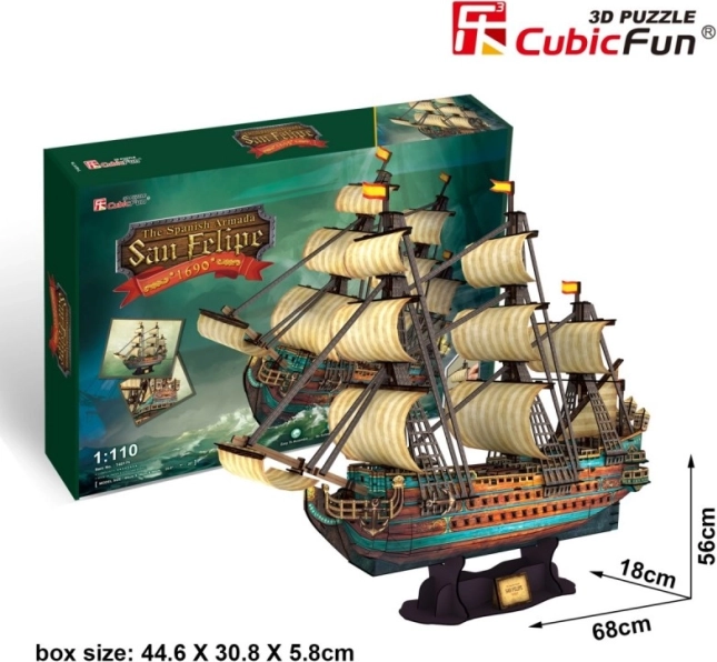 Il puzzle 3D del veliero San Felipe del marchio CubicFun offre un modello realistico di galeone storica con ricche decorazioni e dettagli del ponte attentamente studiati. I pezzi in schiuma di circa 3 mm rivestiti di carta stampata laminata si incastrano perfettamente, consentendo un risultato stabile e accattivante senza usare colla o forbici.