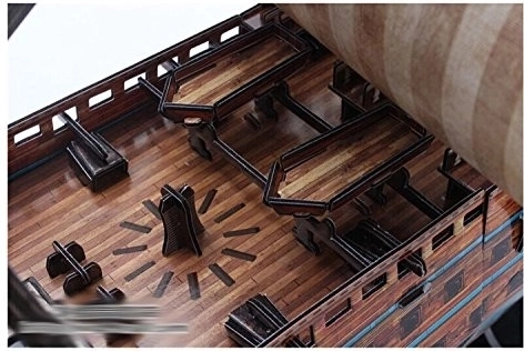 Il montaggio è intuitivo grazie alle istruzioni chiare: i pezzi pretagliati si staccano facilmente dal foglio. Il modello finito, di circa 65 × 18 × 56 cm, diventerà una decorazione di grande impatto per soggiorno, ufficio o cameretta, e delizierà ogni appassionato di storia navale.