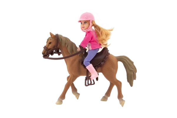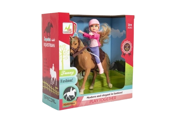 Scopri la magia del mondo dell’equitazione con questo adorabile set per piccole amanti dei cavalli. La bambola fantino con abbigliamento da equitazione e casco, insieme al suo cavallino con criniera lunga, creano un esperienza di gioco realistica. Il giocattolo è realizzato in plastica di qualità e resistente, è sicuro per i bambini dai 3 anni e, grazie alle dimensioni compatte, si trasporta facilmente.