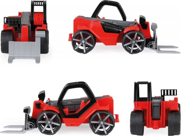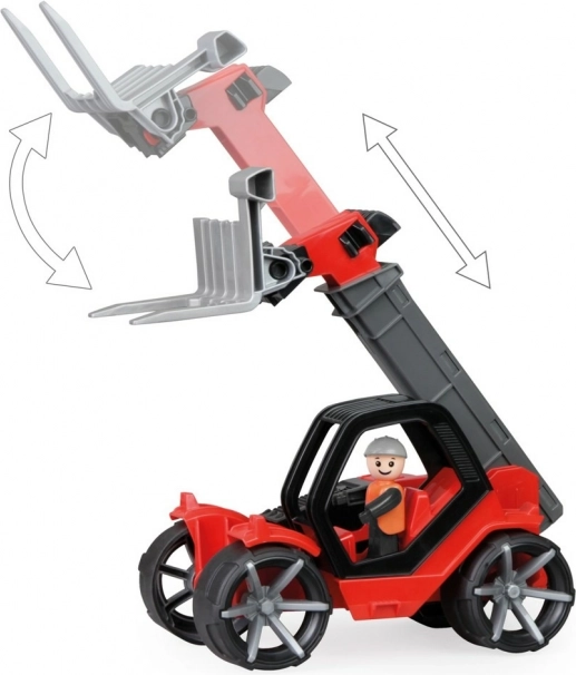 Questo caricatore telescopico è realizzato in plastica di qualità e offre una struttura solida che resiste a un gioco intenso. Grazie alle ruote gommate con scorrimento silenzioso è ideale anche per giocare al chiuso. Con la cabina apribile e l’omino attivo, i bambini possono facilmente immaginare di essere veri operatori di un veicolo da cantiere.