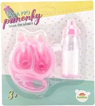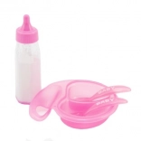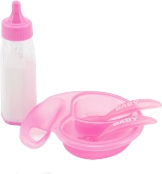 Set per bambole contiene tutto ciò di cui hai bisogno per nutrire: biberon con latte e stoviglie. Un grande divertimento per i bambini dai 3 anni in su!
