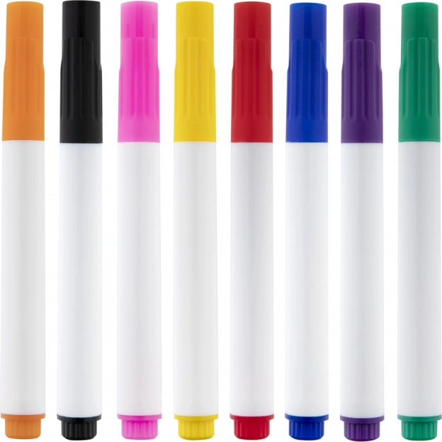 Scopri le possibilit0 creative con il nostro set di pennarelli per tessuti, che include 8 colori vivaci ideali per creare su stoffa.