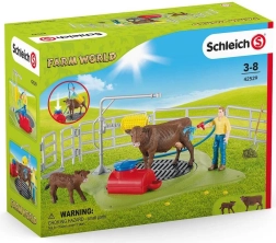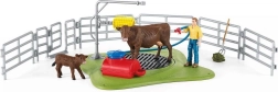 Il set include tutto il necessario: personaggi mucca, vitellino e contadino, oltre ad accessori come tubo, pompa con funzione di spruzzo, spazzola per mucche, recinzioni in salice e cancello. I dettagli di alta qualità, dipinti a mano, tipici di SCHLEICH, stimolano la fantasia e sostengono il gioco di ruolo a tema agricolo.