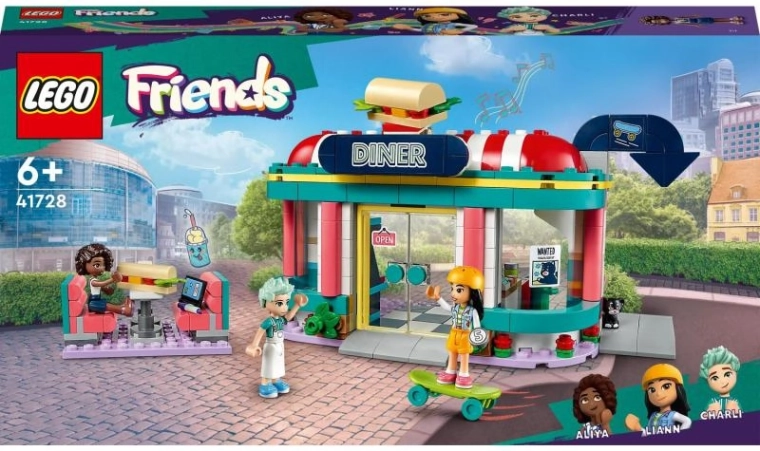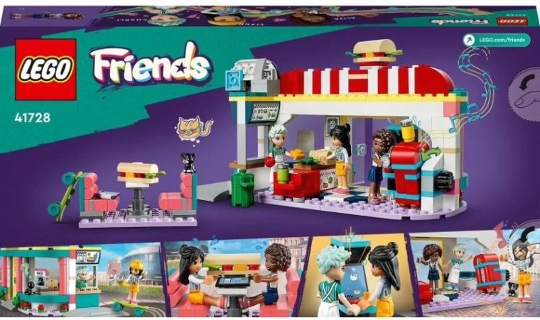 Il set include le mini-doll Liann, Aliya e Charlie, numerosi accessori (bicchieri con bevande, denaro, tre fette di pane, portatovaglioli, cestino) e uno skateboard. Grazie all’app LEGO Builder, la costruzione è intuitiva: è possibile ingrandire il modello, ruotarlo in 3D, salvarlo e tenere traccia dei progressi.