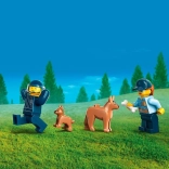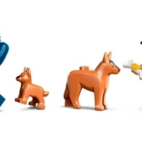 Due minifigure di agenti, una figura di cane e un cucciolo, più spazzola, torcia, pala e snack – tutto per vivaci scene di role-play dei conduttori cinofili.