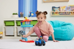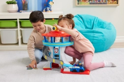 Posiziona Chase in abiti civili nella parte anteriore dell'ascensore e Chase eroe nella parte posteriore. Solleva l'ascensore e guarda come Chase in abiti civili si trasforma in Chase eroe. In cima alla torre scegli una delle 3 carte missione bifacciali e scopri quale sarà il compito del giorno. Quando è ora di un'operazione di soccorso, scivola giù direttamente nell'auto della polizia di Chase e parti all'azione premendo il lancia macchine. Per ancora più divertimento, puoi collezionare altri cuccioli come Marshall, Skye e Rubble con i loro veicoli.