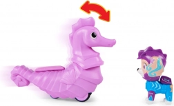 Vi presentiamo la figure Coral della serie Aqua Pups ispirata a Paw Patrol. Coral, metà sirena, indossa una tuta colorata e un casco, e la sua testa è snodabile. Il set include anche un cavalluccio marino su cui Coral può cavalcare.