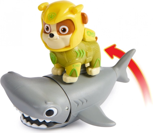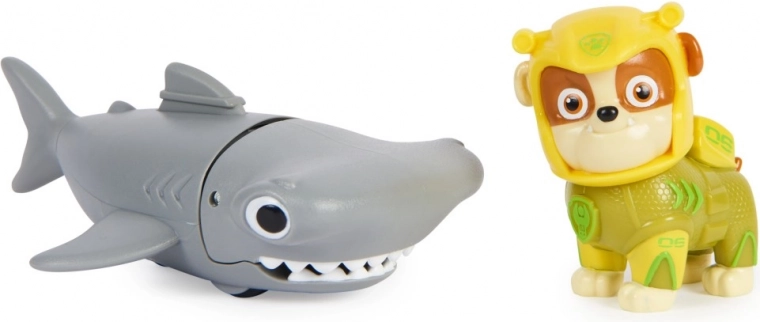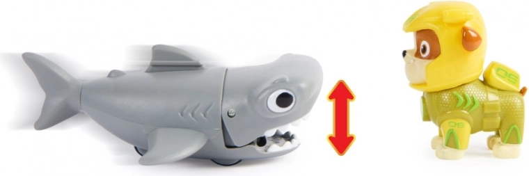 Rubble con una muta nuovissima e il suo fedele amico pesce martello. Sistema Rubble sulla pinna sul dorso del pesce martello, spingi il pesce martello in avanti per attivare i suoi movimenti di masticazione e parti per una missione di salvataggio. Adatto dai 3 anni.
