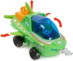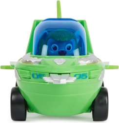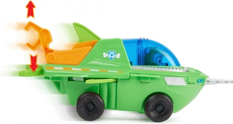 Rocky nel suo piccolo veicolo di salvataggio seghettato per cuccioli d’acqua.