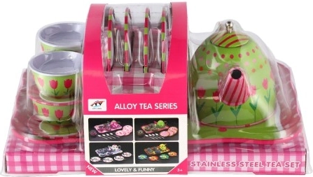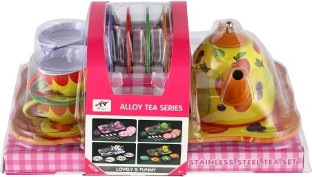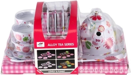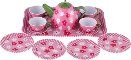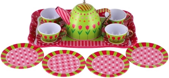 Questo set da tè in latta per bambini porta gioia nel gioco di servizio immaginario e nella socialità. Il set è realizzato in metallo, quindi è solido, resistente e leggero per le piccole mani. I motivi colorati con fiori, farfalle e frutta stimolano creatività e immaginazione, mentre il vassoio da portata facilita il trasporto e il gioco.