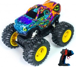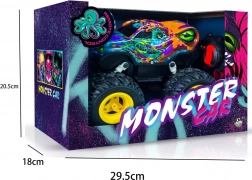 L’auto RC Monster 2.4G con effetto luminoso si muove a sinistra, a destra, in avanti e indietro. Velocità massima 5 km/h. Frequenza 2405 MHz – 2475 MHz, potenza massima a radiofrequenza 5 mW, portata del telecomando 20 m.