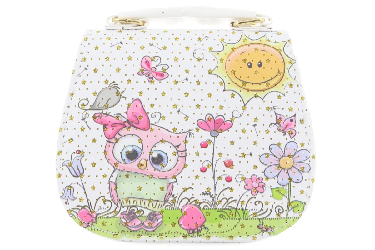 Questa borsetta bianca con gufetto è l’accessorio perfetto per le piccole signorine. Grazie alle dimensioni compatte si porta comodamente e contiene tutte le cosine che un bambino vuole avere con sé: fazzolettini, piccoli giocattoli o tesori raccolti durante una passeggiata.