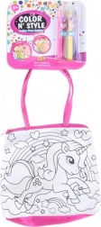 Set creativo per piccoli artisti: borsetta da colorare di circa 16 × 16 cm, che include 4 speciali pennarelli per tessuti e strass decorativi. Ideale per lo sviluppo della creatività, della motricità fine e di uno stile originale. Adatta ai bambini dai 3 anni.