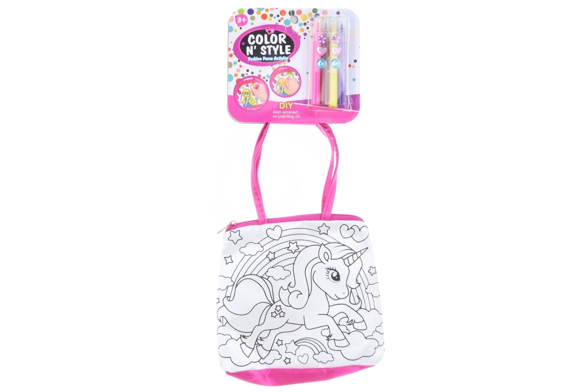 Trasforma una semplice borsetta in un accessorio di moda unico. Questa borsetta da colorare permette ai bambini di esprimere la loro fantasia grazie ai pennarelli specifici per tessuti e agli strass decorativi inclusi. Il risultato finale potrà essere indossato con orgoglio ogni giorno.