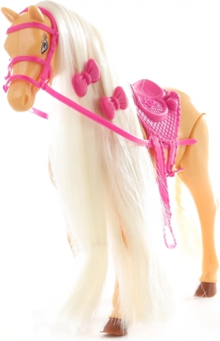 Con sella e testiera rosa, questo cavallo porta un tocco di fantasia nella cameretta dei bambini.