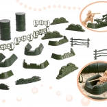 elementi per costruire una base militare (barricate, barili, recinzioni, palme e altro)