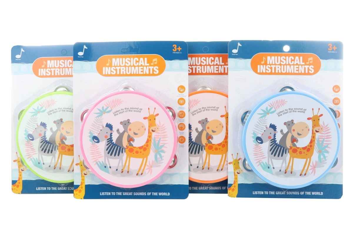 Rendi più divertente il gioco dei bambini con un colorato tamburello con animaletti dal diametro di 16 cm. È leggero, sicuro e ideale per il primo approccio alla musica. Stimola ritmo, motricità e creatività fin dai 3 anni.