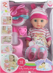 - Ricco set di accessori: scarpette, bavaglino, biberon, piattino e altri accessori.