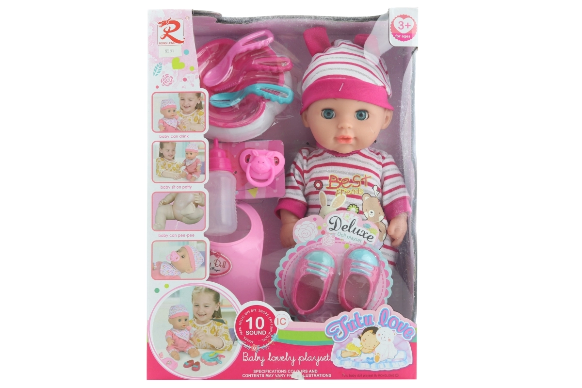 - Funzioni interattive: la bambola emette suoni e fa la pipì dopo aver bevuto.