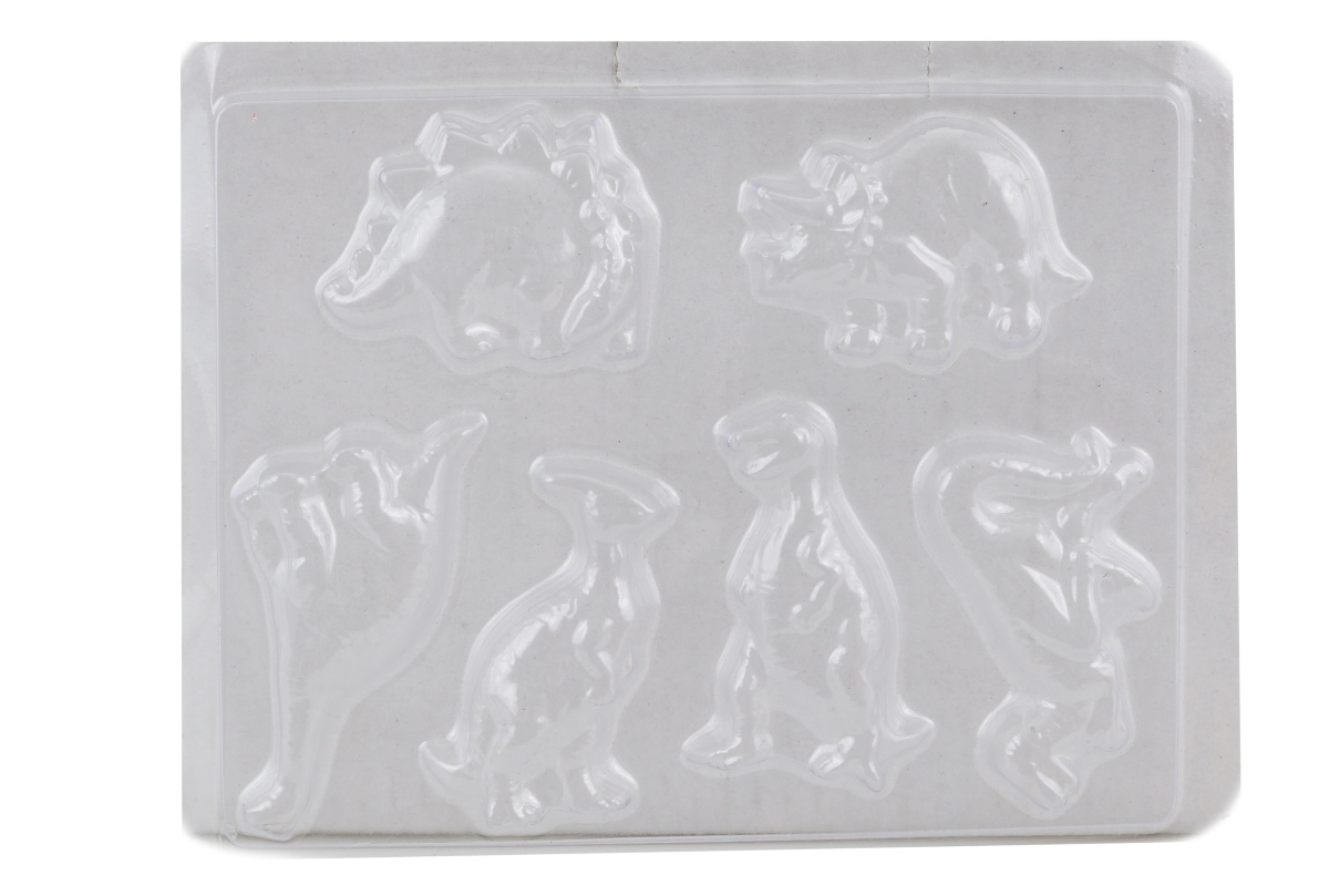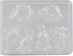 Lo stampo con sei diversi motivi di dinosauri garantisce risultati vari. Le creazioni finite decoreranno il frigorifero o la lavagna magnetica.