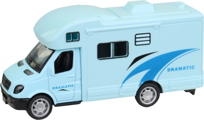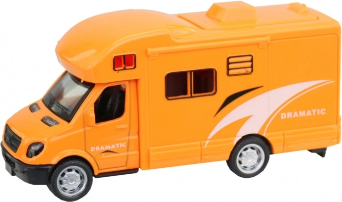 Struttura resistente in metallo con finestre realistiche, stampe e elementi sul tetto per un gioco fedele di viaggio e campeggio.
