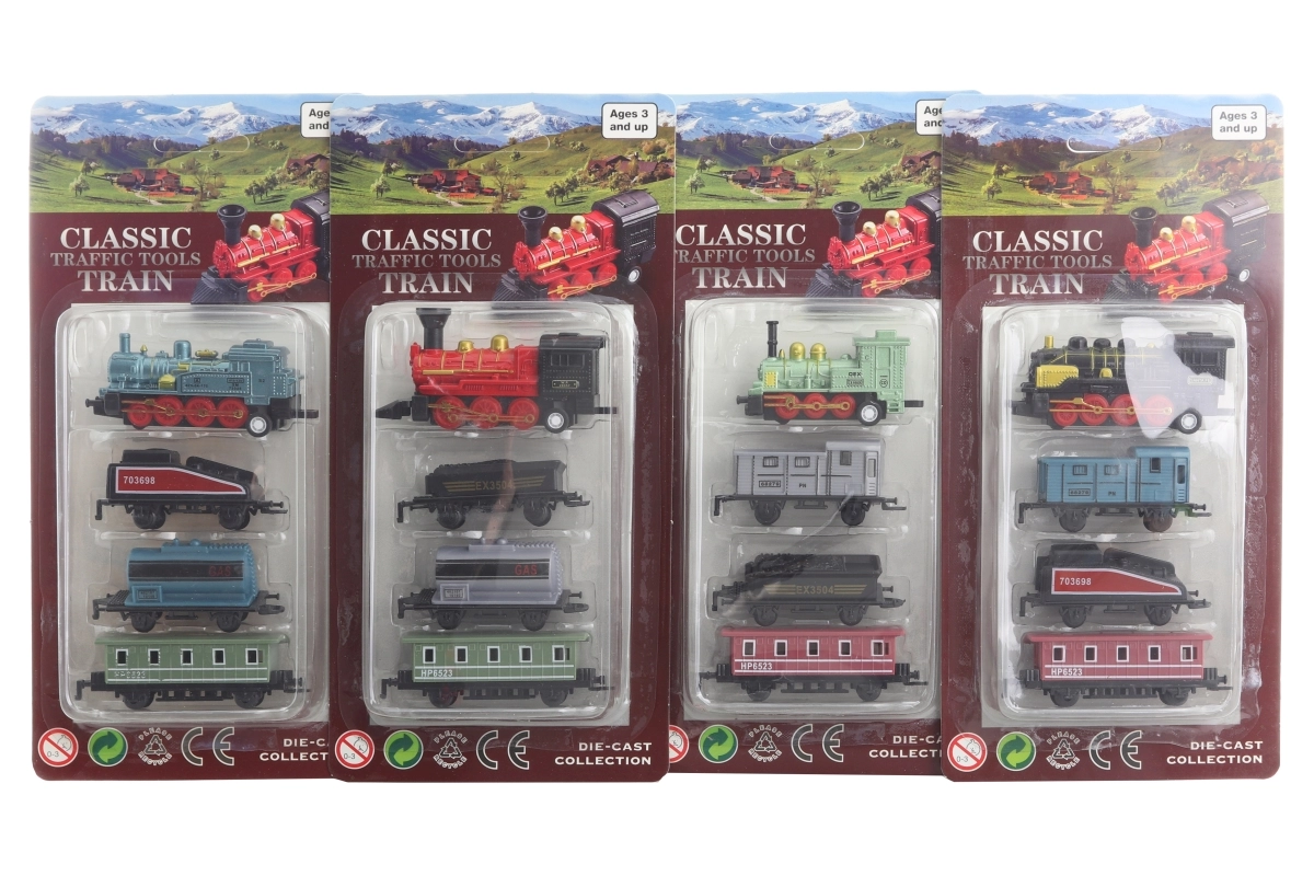 Scopri il divertimento sui binari con un elegante set di trenini in metallo per bambini dai 3 anni. Il set include una locomotiva e 3 vagoni, apprezzati per i dettagli curati e la struttura in metallo resistente – ideale per i piccoli amanti dei trenini.