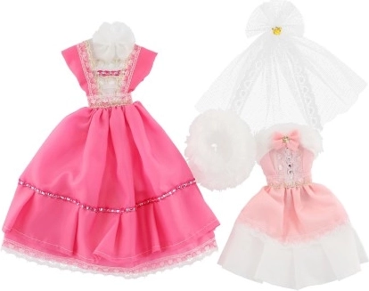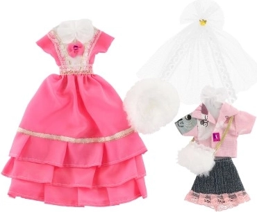 Due set di vestiti diversi, ciascuno con dettagli propri che donano ad ogni bambola un aspetto straordinario.