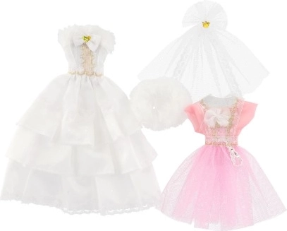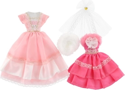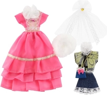 Trasforma la tua bambola in un'icona della moda con il nostro set di vestiti. Include due tipi di abiti splendidi con eleganti dettagli in pizzo, completati da pratici accessori per diverse occasioni. Ottima scelta per tutte le piccole stiliste!