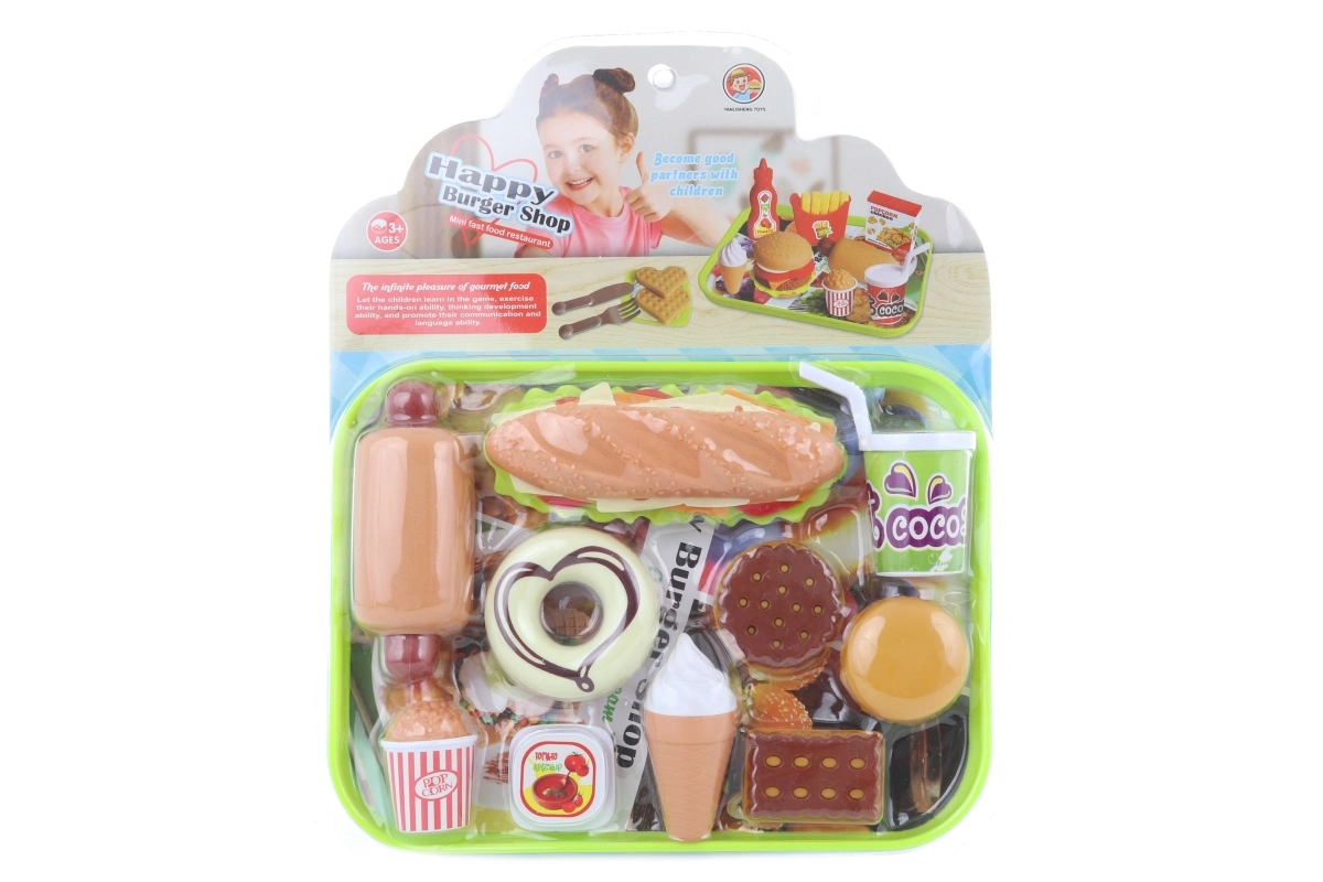 Il set comprende hot dog, donut, biscotti, gelato, bevanda e altri accessori per un gioco di cucina realistico. È un’ottima idea regalo e completa alla perfezione la cucinetta o il negozietto dei bambini.
