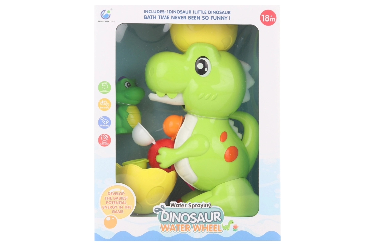Rendi il bagnetto dei bambini più divertente con questo allegro mulino ad acqua a forma di dinosauro. Grazie alle ventose si fissa facilmente alla parete della vasca o alle piastrelle e l’acqua mette in moto le palette per giochi acquatici divertenti. Ideale per bambini da 18 mesi, con dimensioni del dinosauro circa 15 × 24 × 8 cm e un pratico fissaggio su superfici lisce.