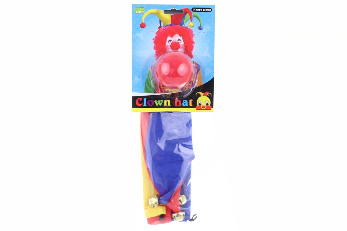 - 1× cappello da clown, 1× naso rosso in schiuma
