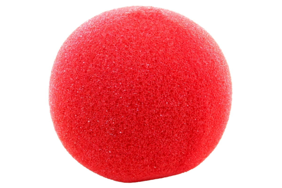 Naso in morbida schiuma di un rosso intenso, facile da indossare, leggero e che torna in forma dopo la pressione.